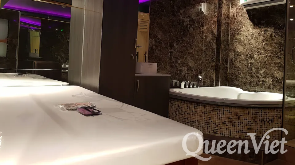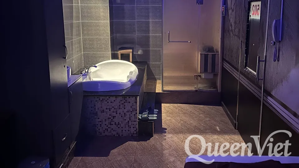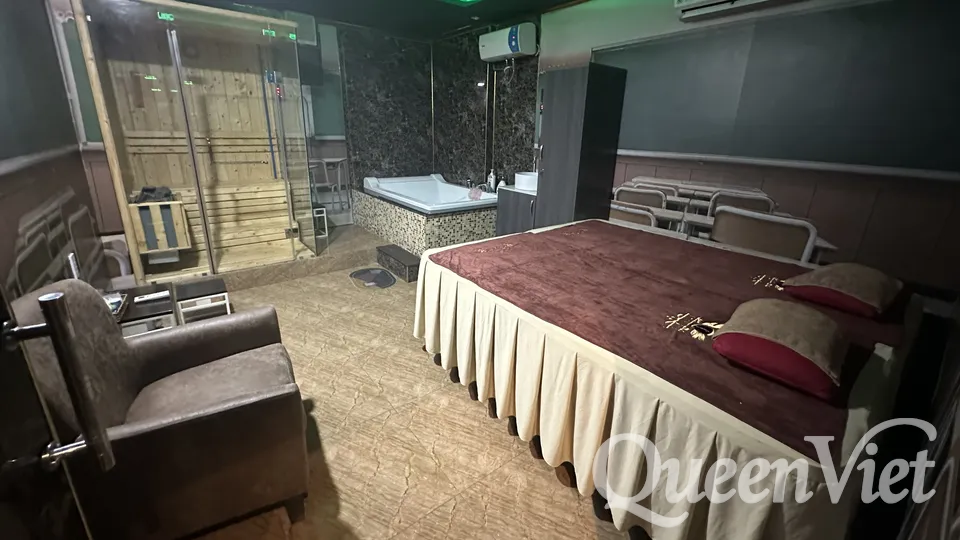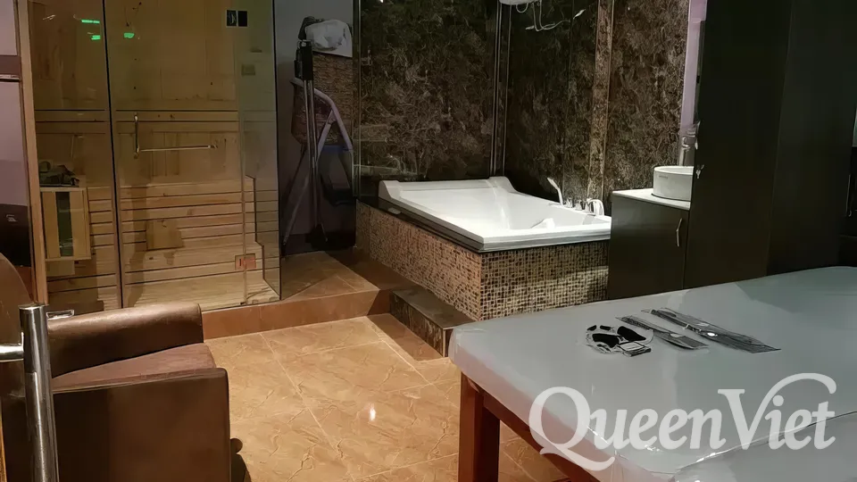 호치민 스타킹 마사지의 시설은 최신 유행의 화려함과는 거리가 있습니다. 하지만 기존 딸기 스파의 다소 노후된 시설과 비교했을 때 한층 개선되었으며, 깔끔하고 쾌적하게 관리되고 있어 이용에 불편함은 없습니다. 모든 룸은 1인 1실의 프라이빗한 구조로 되어 있으며, 내부에는 개인용 사우나 시설과 욕조, 마사지 베드가 완비되어 있습니다. 예약 후 방으로 안내받으면 직원이 들어오기 전까지 사우나를 이용하며 편안하게 대기할 수 있어, 전체적인 서비스 흐름이 짜임새 있게 구성되어 있습니다.